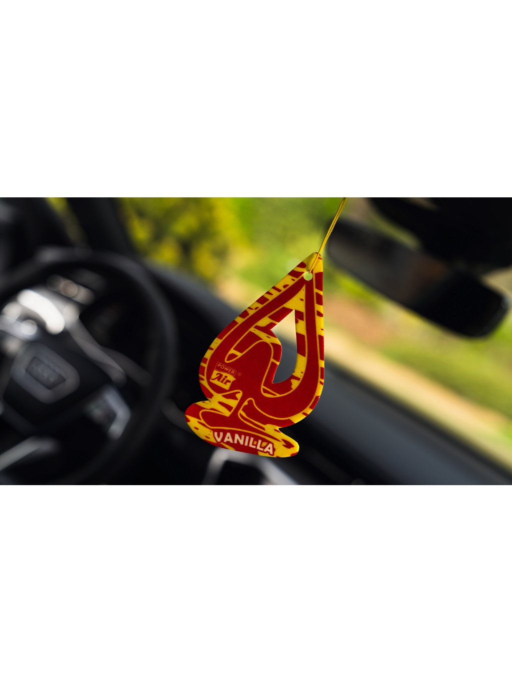 Klasický papírový osvěžovač vzduchu na gumičce k zavěšení