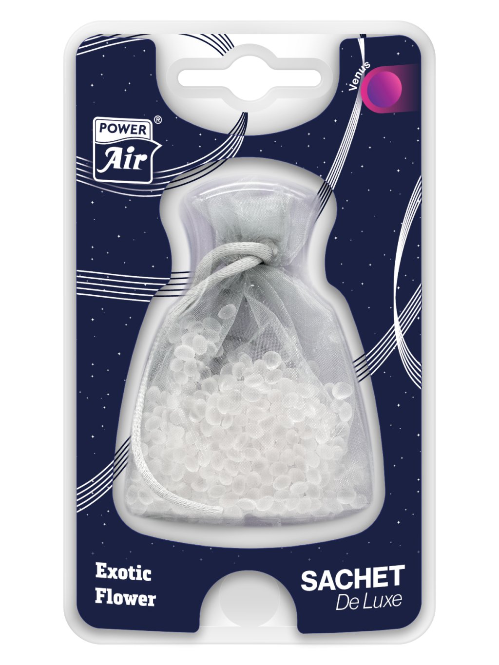 Vonné perličky z parfémovaného granulátu s vůní EXOTIC FLOWER v luxusním sáčku k zavěšení. Použití vhodné jako vůně do aut, domácností, koupelen, WC a kanceláří.